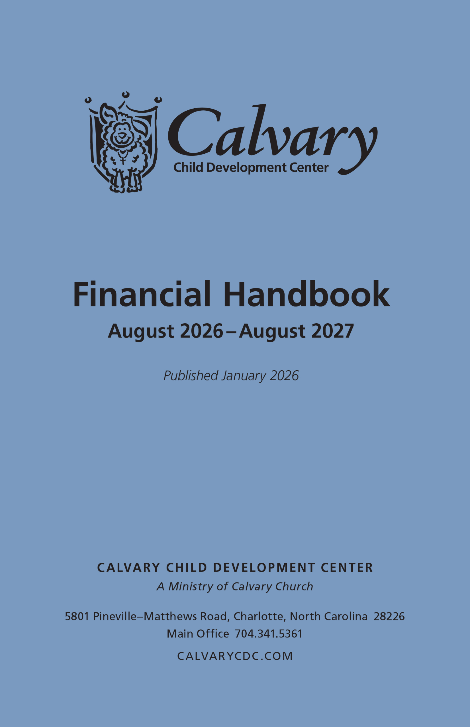 The CCDC Financial Handbook outlines the programs we offer, our tuition and fees, as well as all related financial policies, procedures, and requirements for the Calvary Child Development Center.